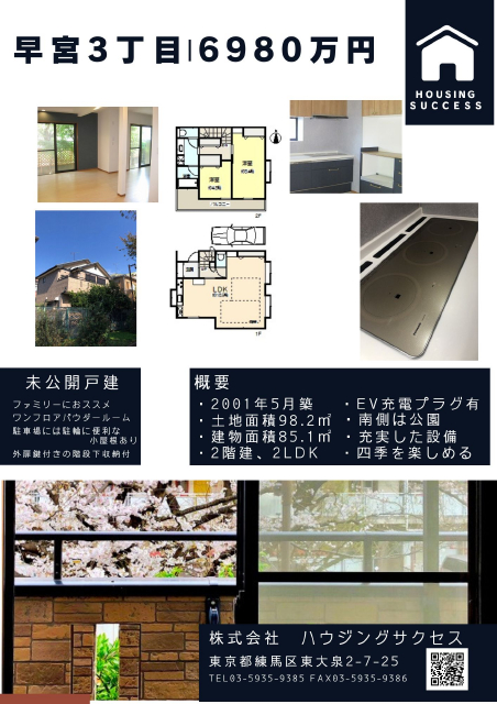 | 接道 | 北 4m(幅員) 公道 9m(接面) | 学区 | 早宮小学校 400m 開進第一中学校 850m |