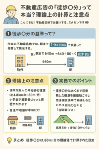 一般的に、徒歩〇分の計算は以下の通りです。